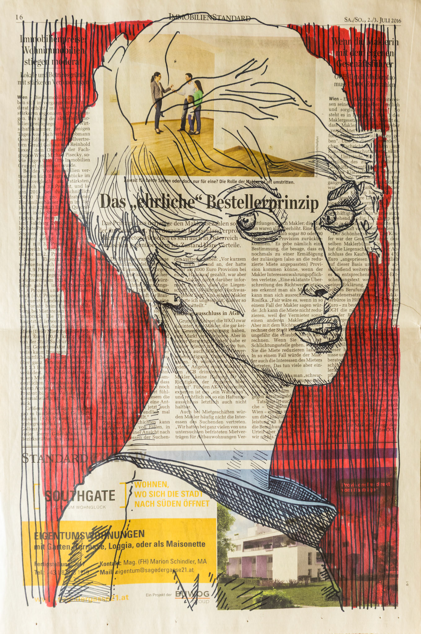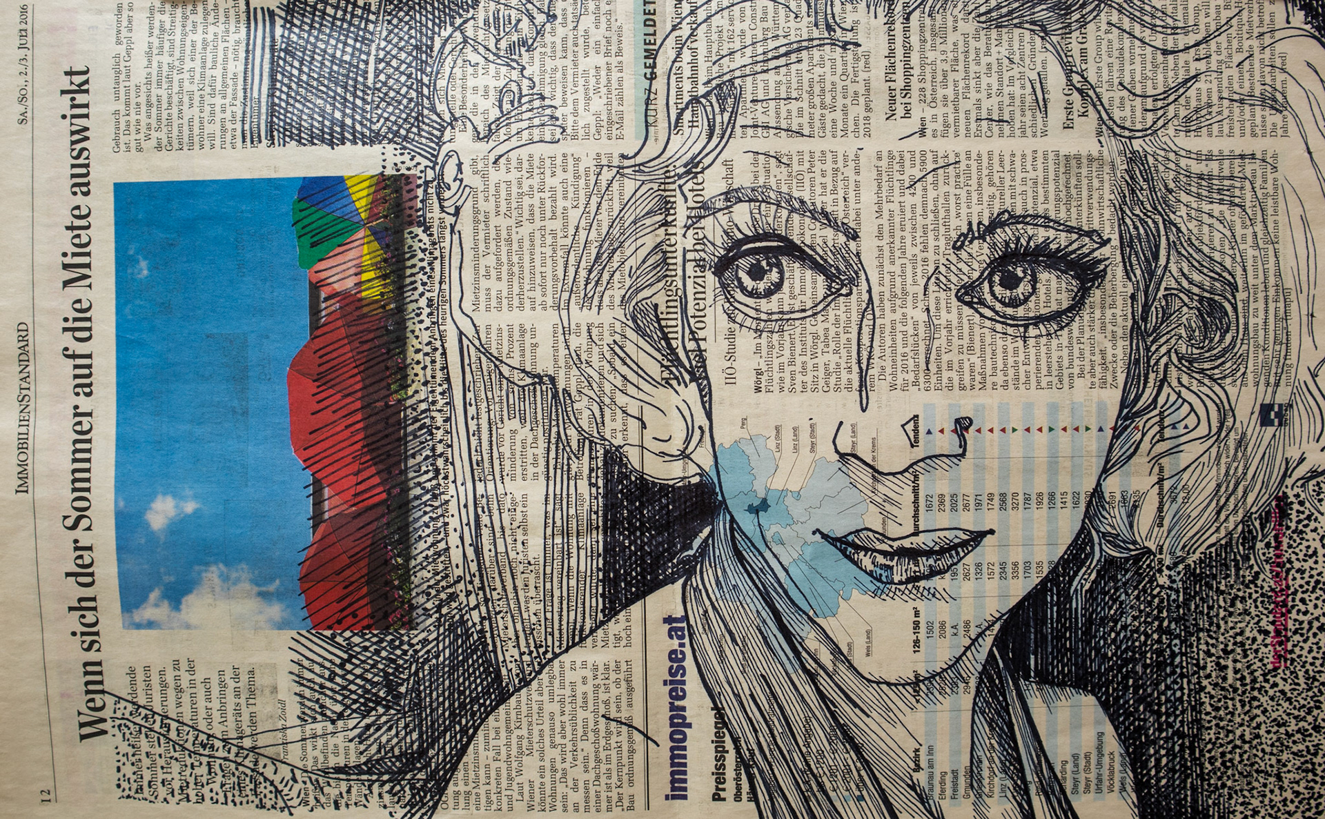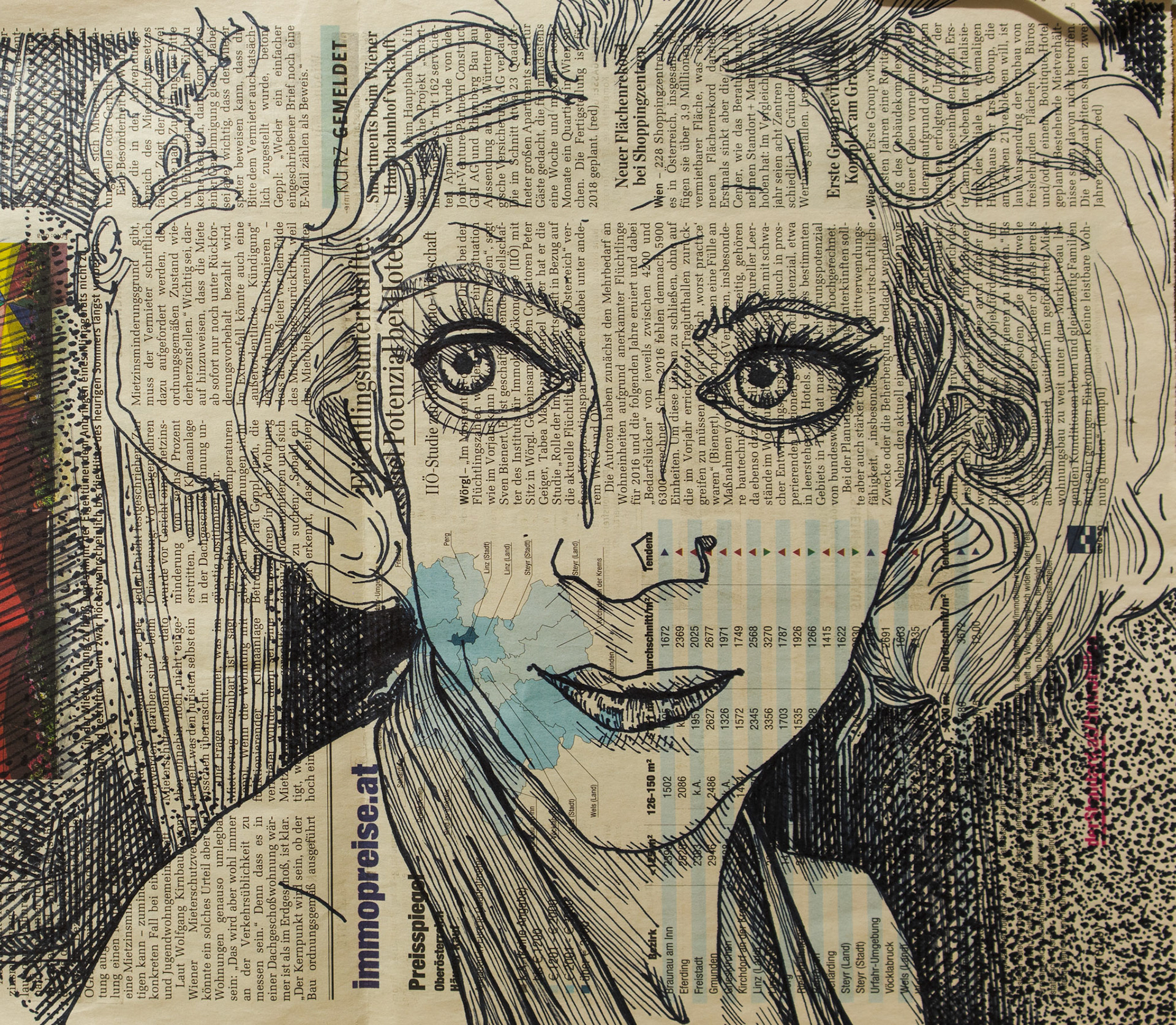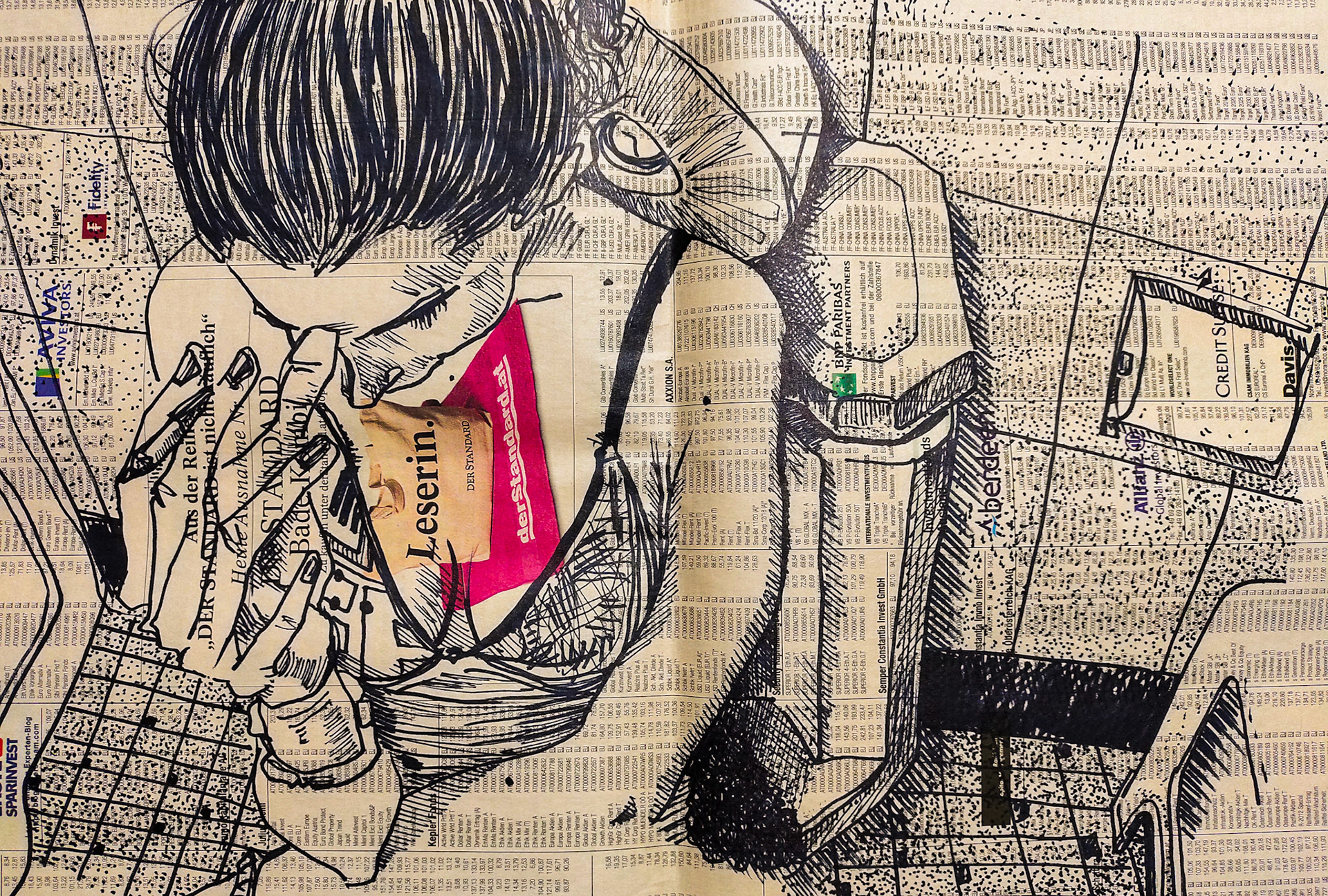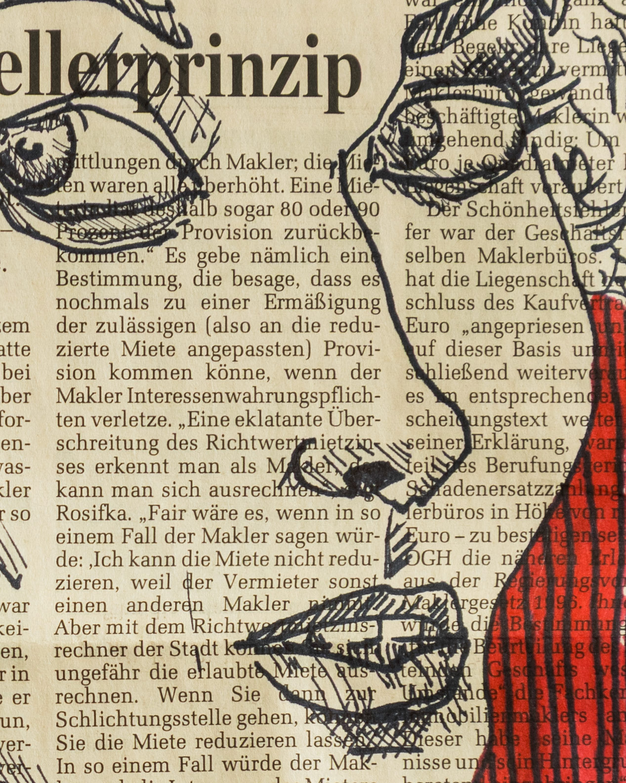 Technique: Sharpie and Markers on Austrian Newsprint (Der Standard).
