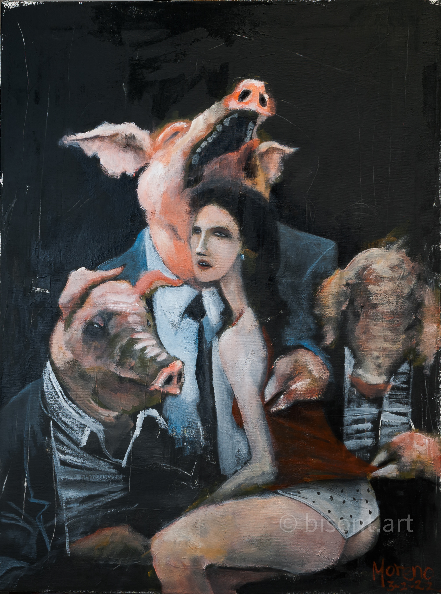 60 x 80 cm, acrylic on fabric, 2022. Signed as MORENO