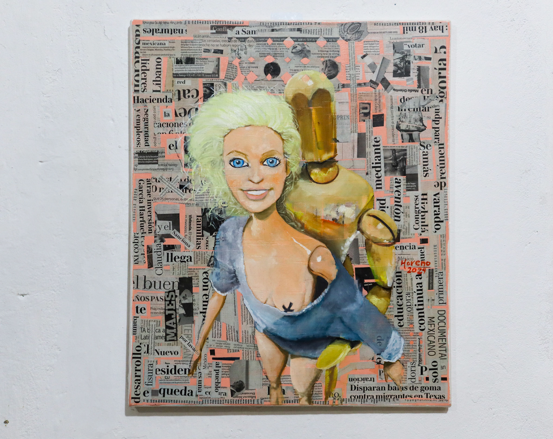 Abordando temas de sueños y realidades alternas, Éxtasis Virtual explora el profundo impacto de la tecnología digital en el deseo humano. Elaborada con cartón de desecho, esta escultura representa una figura en un estado de intensa excitación sensorial, usando unos lentes de realidad virtual. El código binario (01110011 01100101 01111000) sutilmente integrado en los lentes se traduce como 'SEXO', exponiendo la interacción entre tecnología, experiencia simulada y el instinto humano primario. El uso de cartón reciclado contrasta fuertemente la naturaleza efímera del placer digital con la materia tangible y desechada de nuestro mundo físico.
