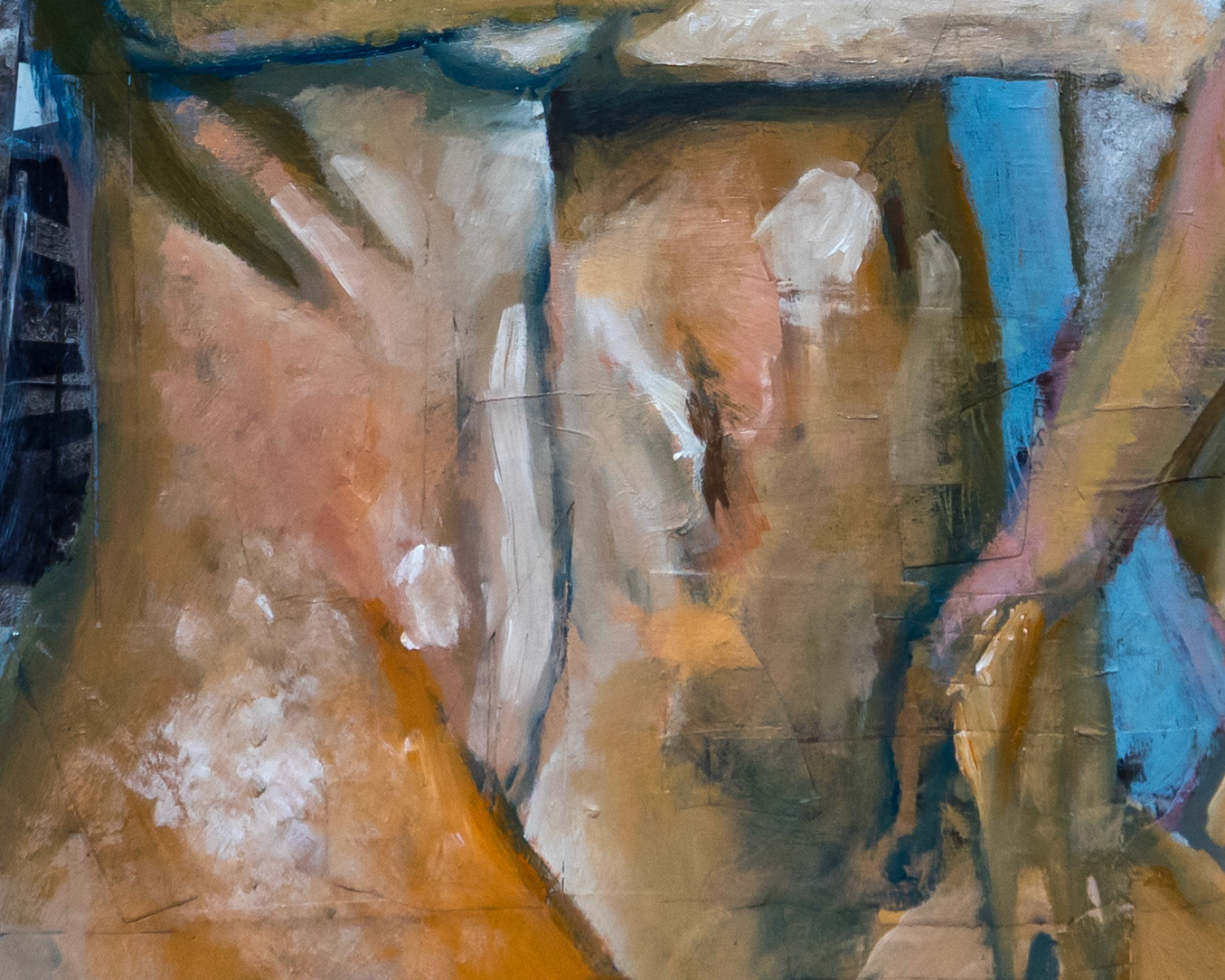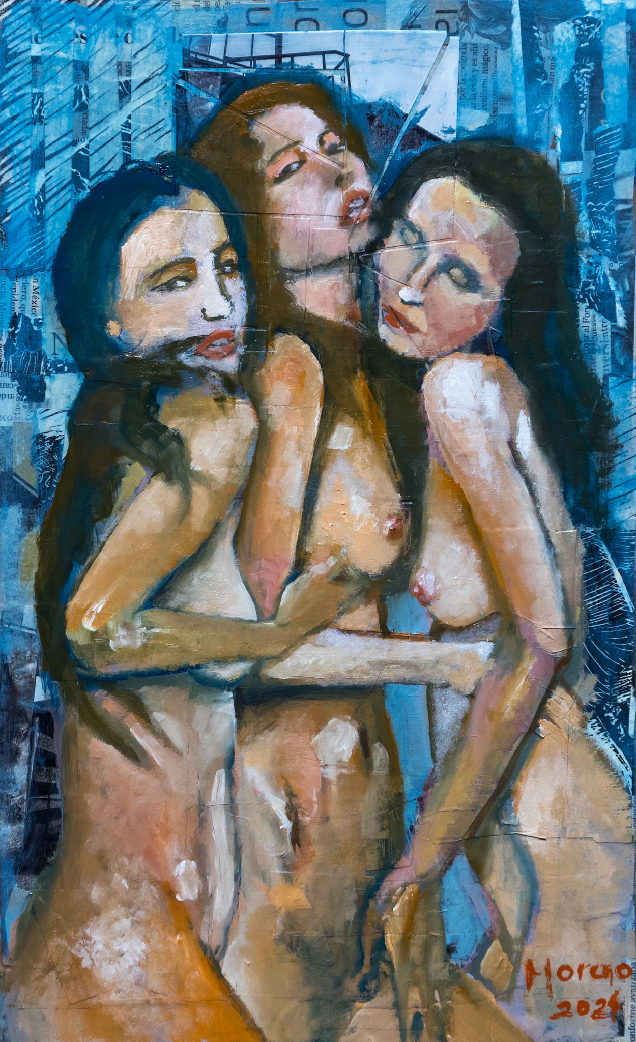 An investigation into the digital assembly of the body through layered mediums. This work is constructed using the artist's own photographic studies, overlaid with newsprint (data), original prints, and oil paint, challenging the viewer to discern where the photography ends and the fabrication begins. This piece was the main image for the artist’s exhibition at KOMM,ST Gallery in Anger, Austria.